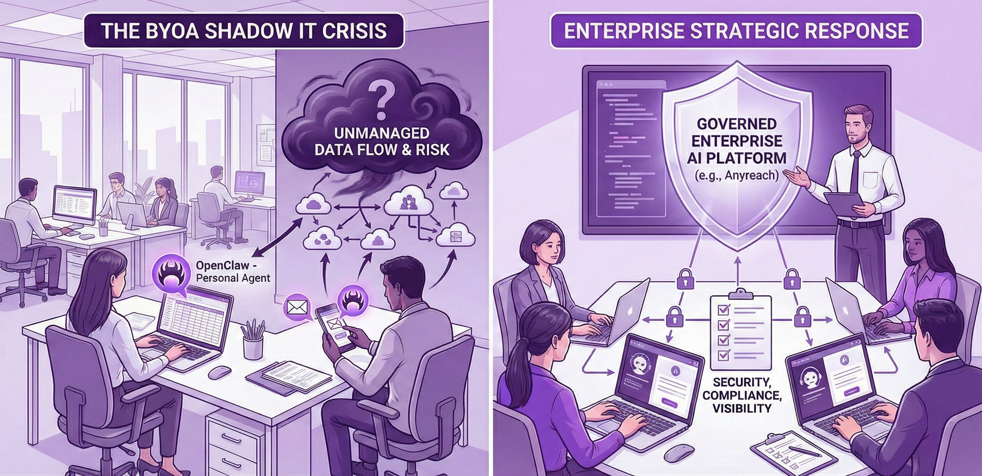Employees are adopting personal AI agents like OpenClaw for work tasks. Learn why BYOA is the next shadow IT crisis and how enterprises can respond strategically.