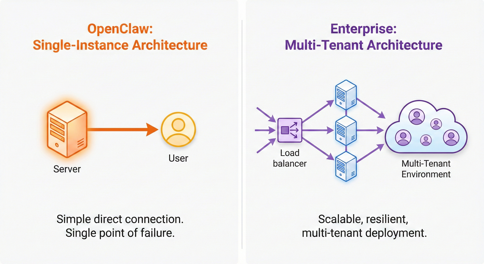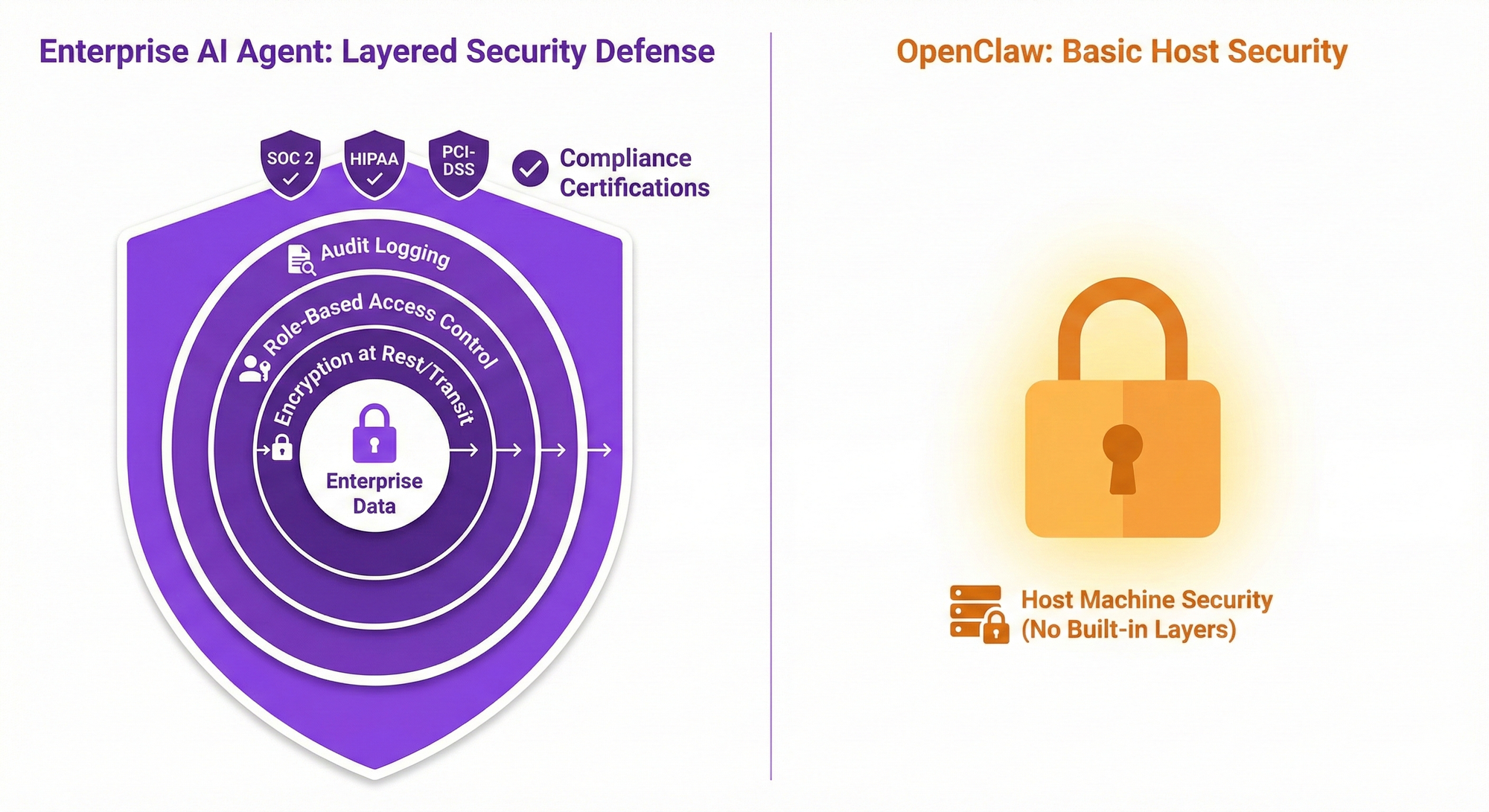 Understand the critical differences between OpenClaw's open-source AI agent and enterprise AI agent platforms. Security, compliance, scalability, and support compared.